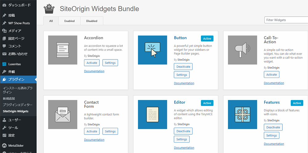Page Builder by SiteOrigin というプラグインも合わせて入れるとめちゃめちゃ簡単にサイトが作れます。